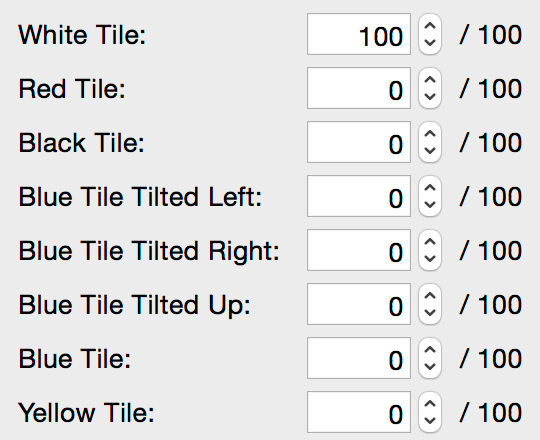 If the game decides not to generate an empty space, the tile type is picked based on its probability weight value: